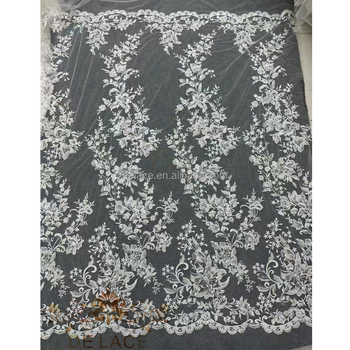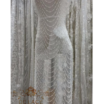 DELACE MY exquisitas rayas onduladas encaje con cuentas gran oferta hermoso vestido de novia tela de encaje de perlas