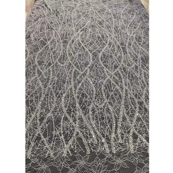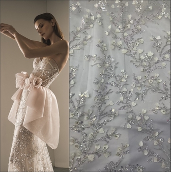 DELACE – tissu en maille de perle d'ongle de branche d'argent avec paillettes pour robe de mariée