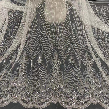 Tissu de dentelle de mariage avec paillettes, dentelle perlée élégante pour robes