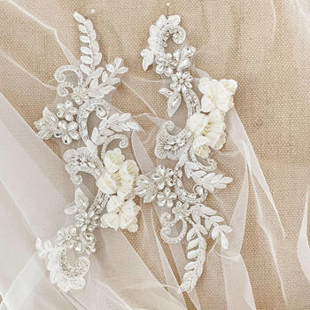 DELACE perlé à la main 3d fleur paires avec paillettes broderie florale accessoires pour robe de mariée