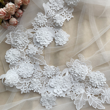 DELACE 3D פרח מדליון תיקוני שרוכים applique שנהב אלגנטי פרחוני לרקום עבור כלה חתונה שמלה